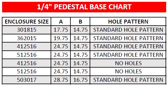 Pedestal Base is constructed of 365-T6 (heat treated) cast aluminum.